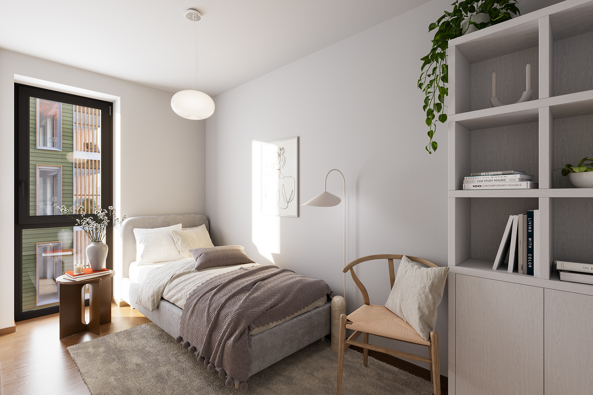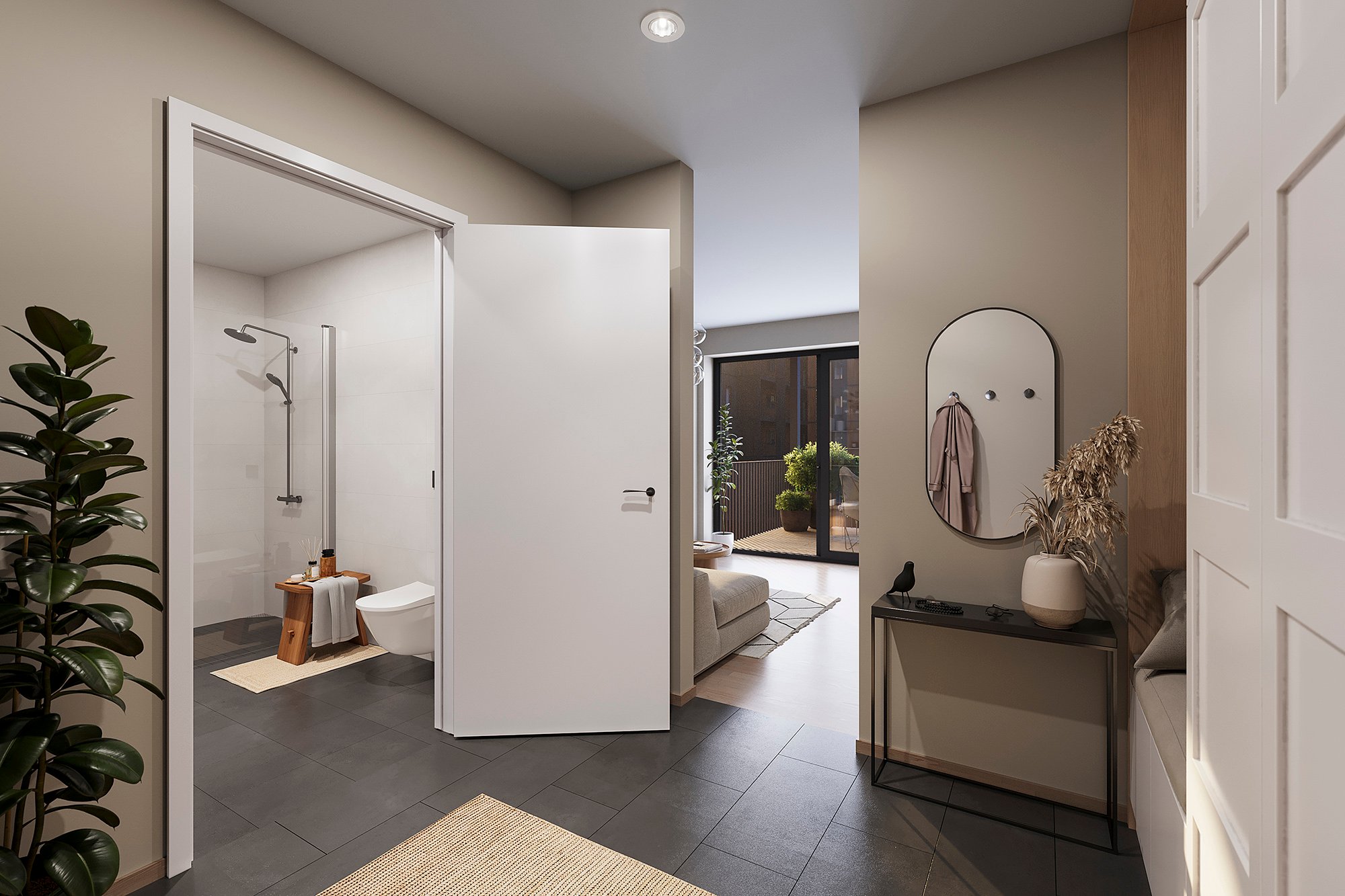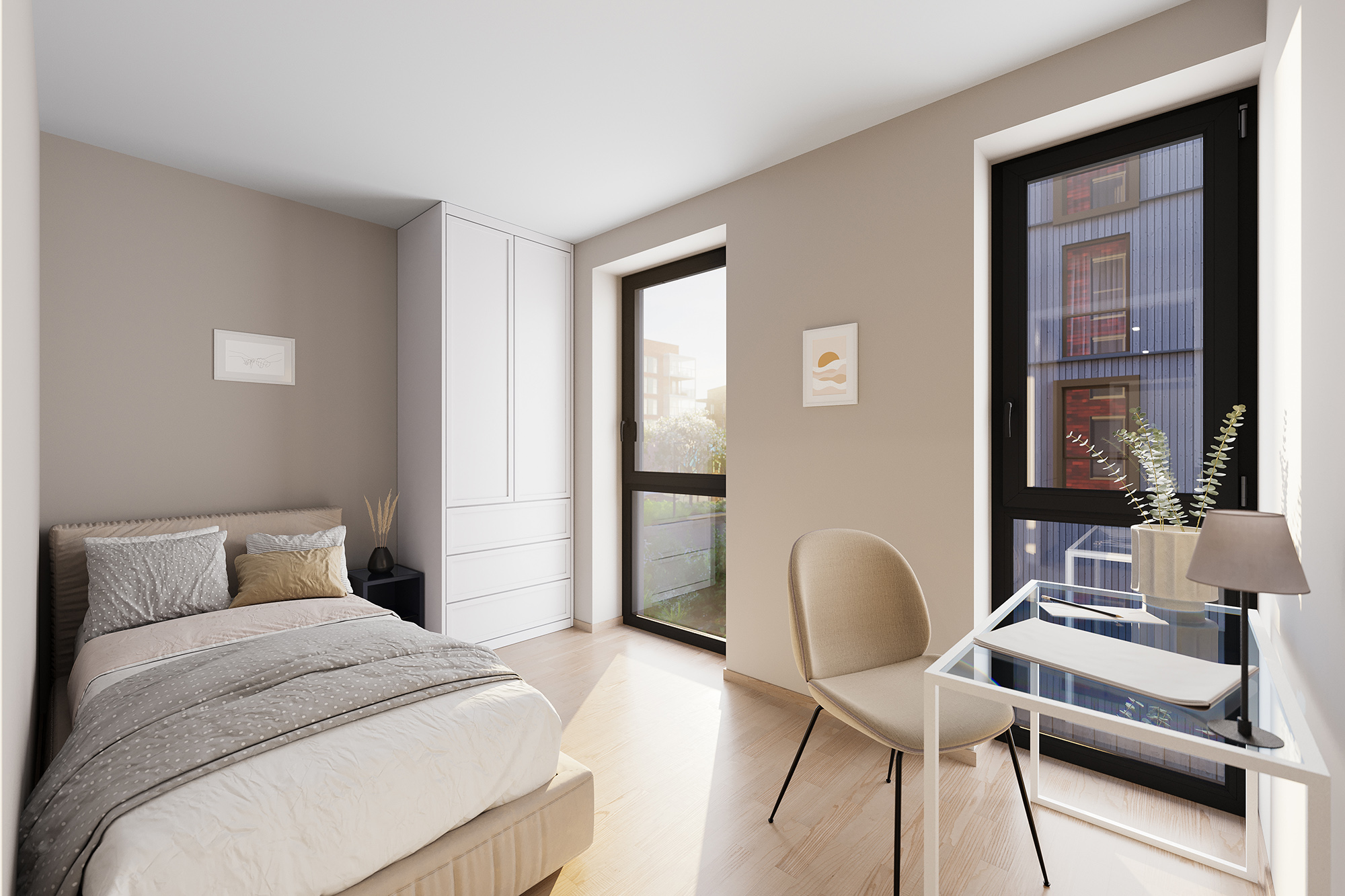 53 Kvm (1 sov)I midten av Verket Atrium hus A, finner vi en kompakt og effektiv leilighet med ett soverom. Leiligheten har også eget område til kontor og arbeidsplass.