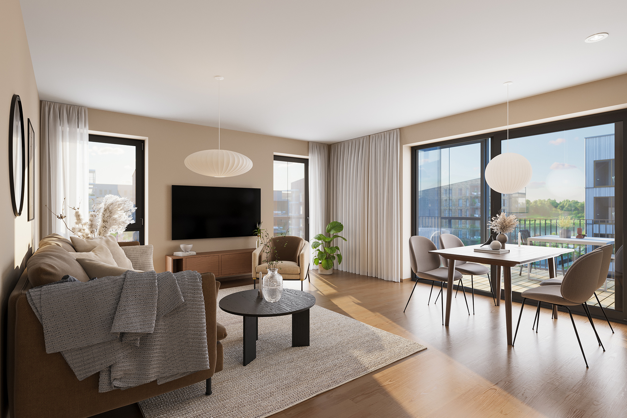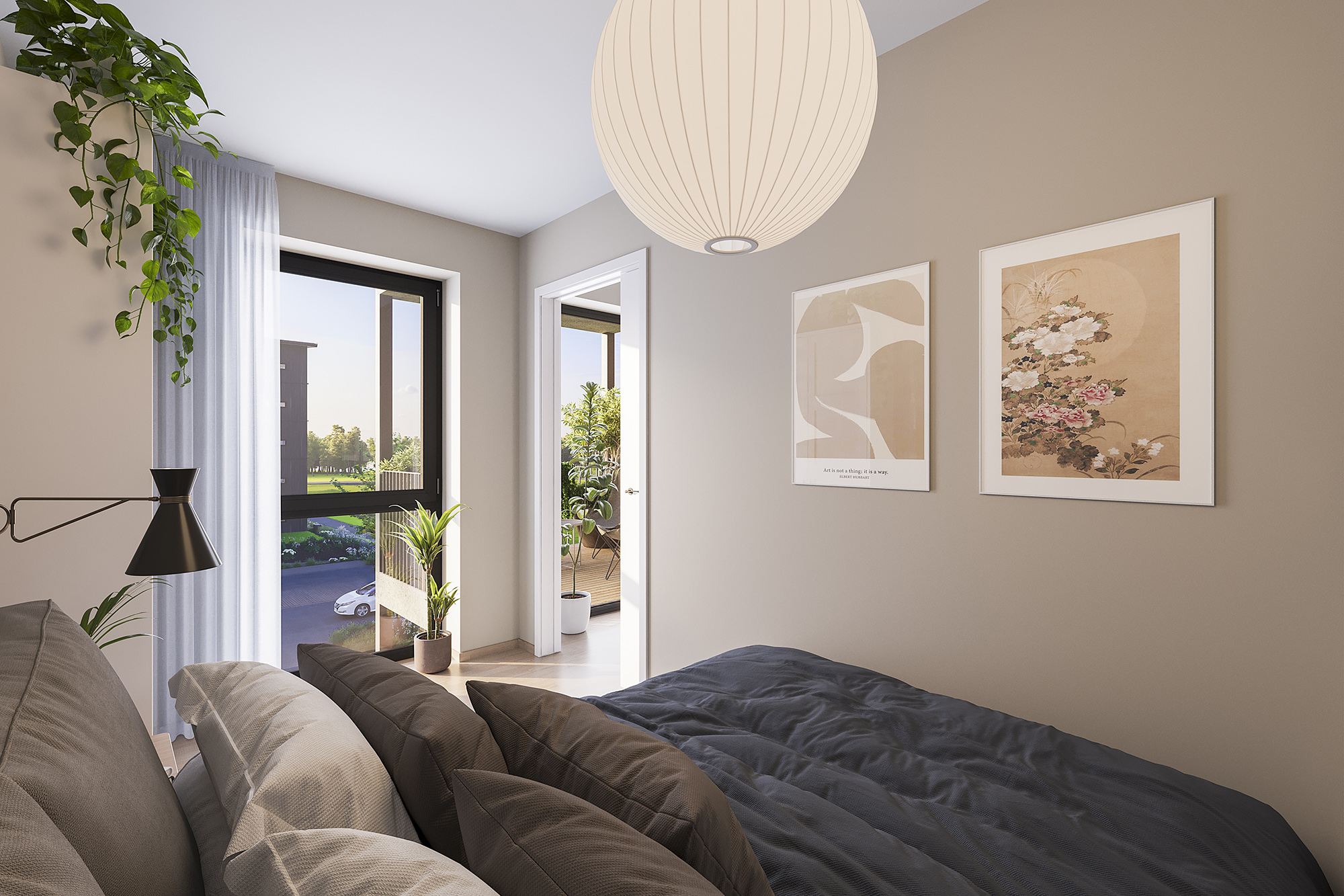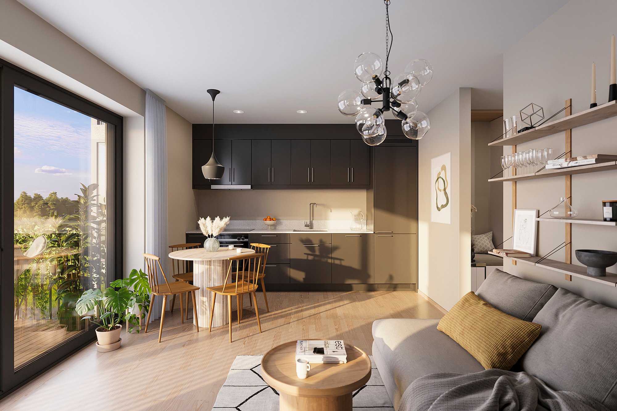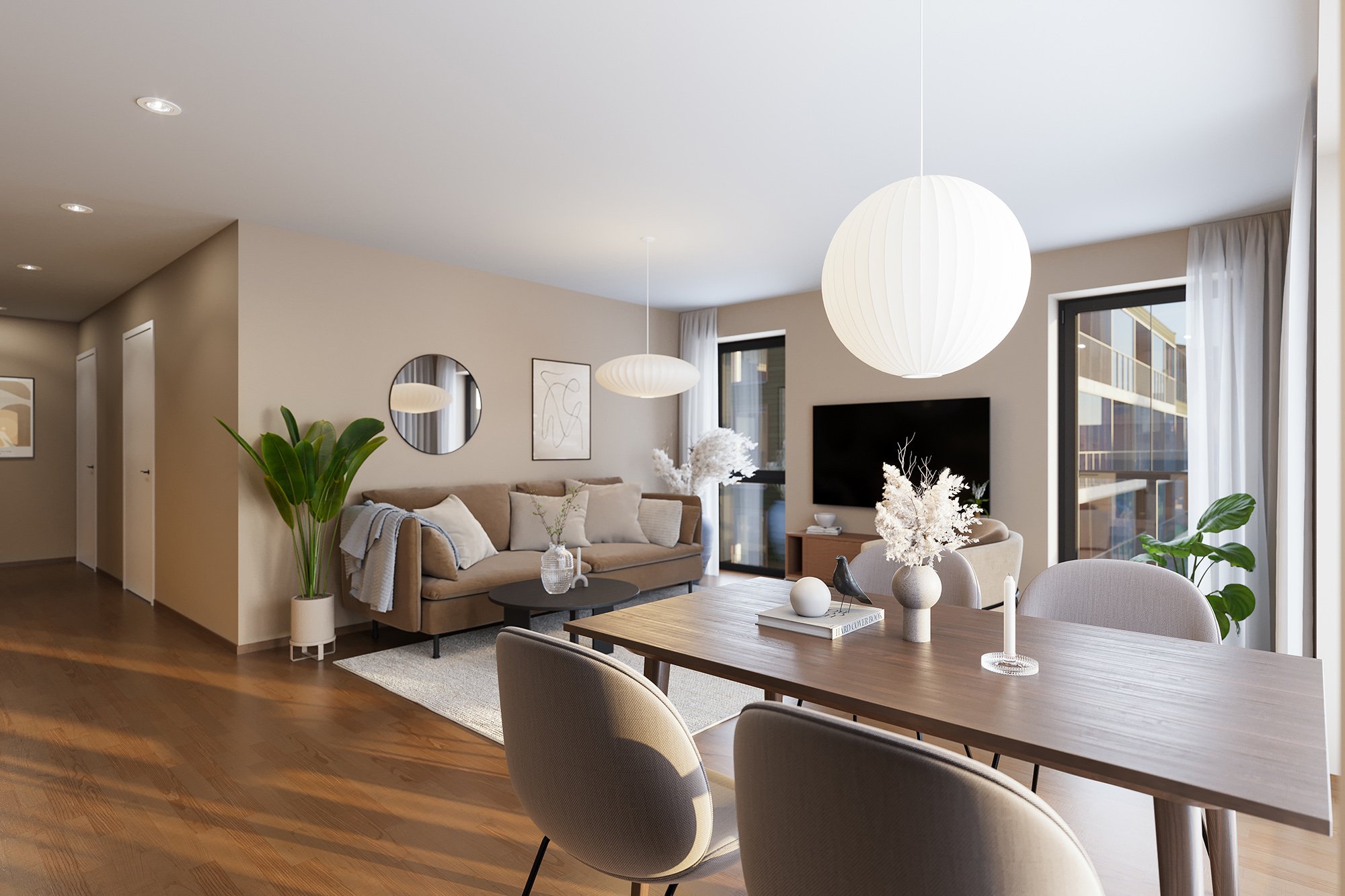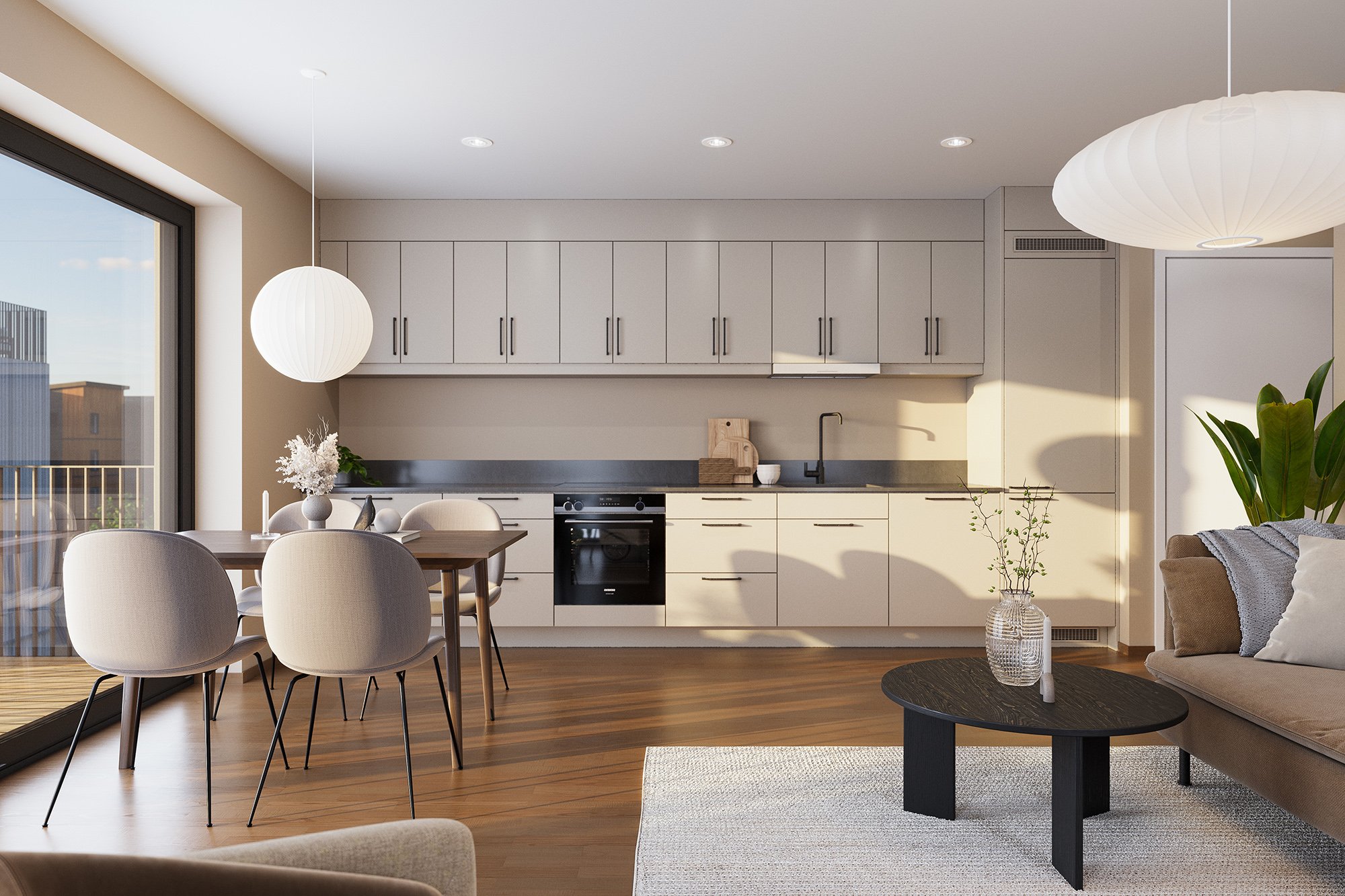 Fra boligene har du nydelig utsikt mot den grønne felles hagen i Verket Atrium og mot Verksparken, med sitt vakre parkområde og rolige omgivelser.