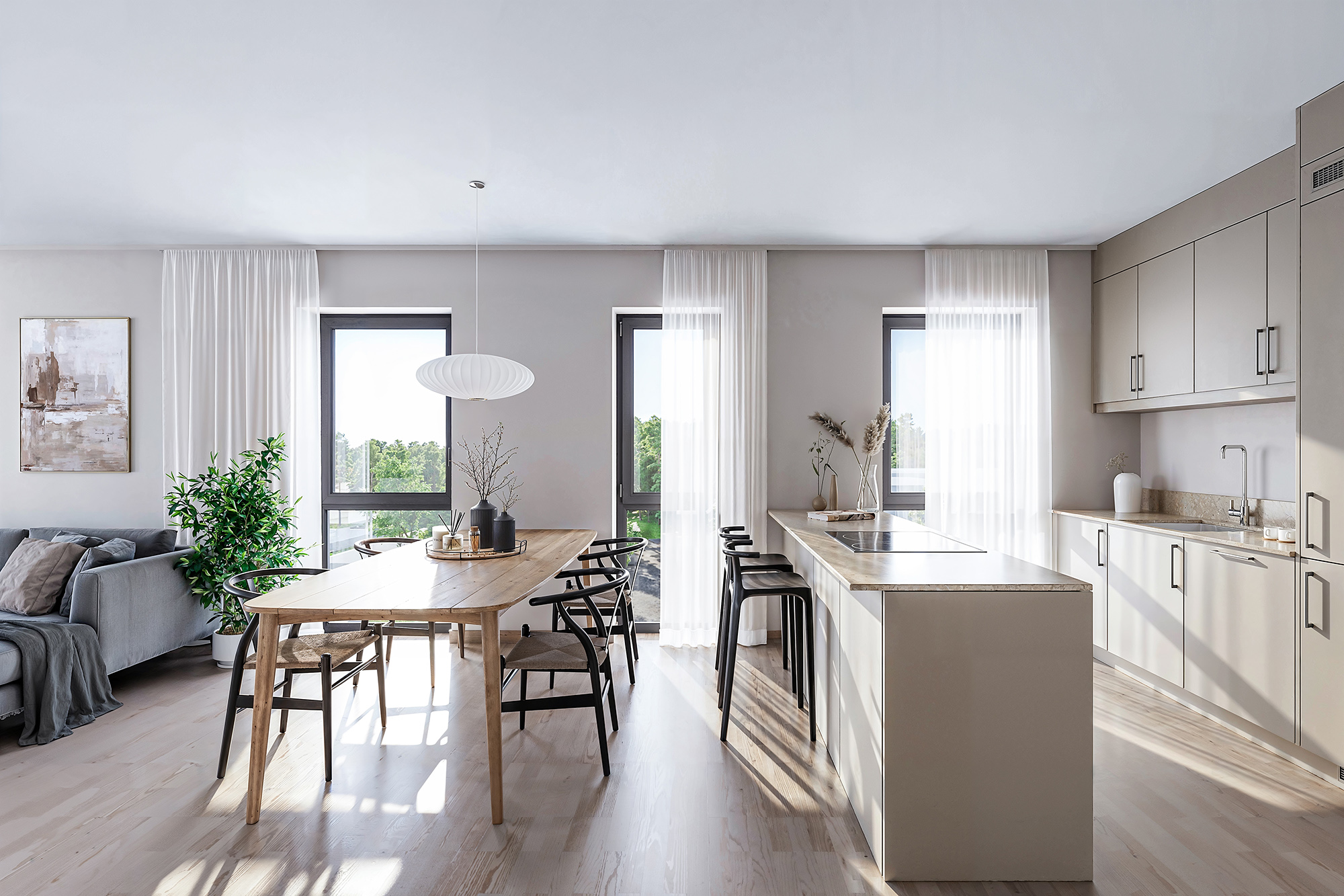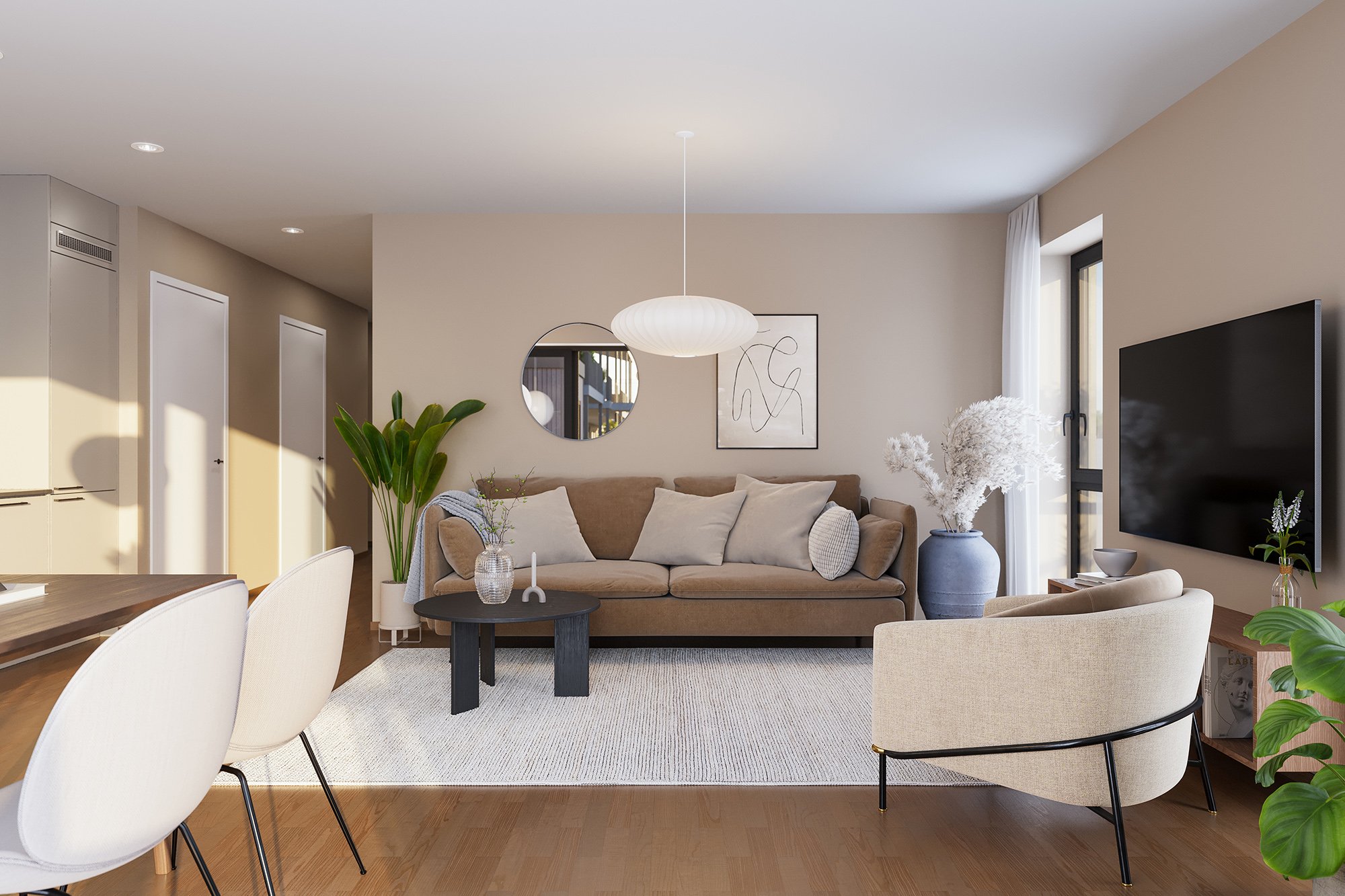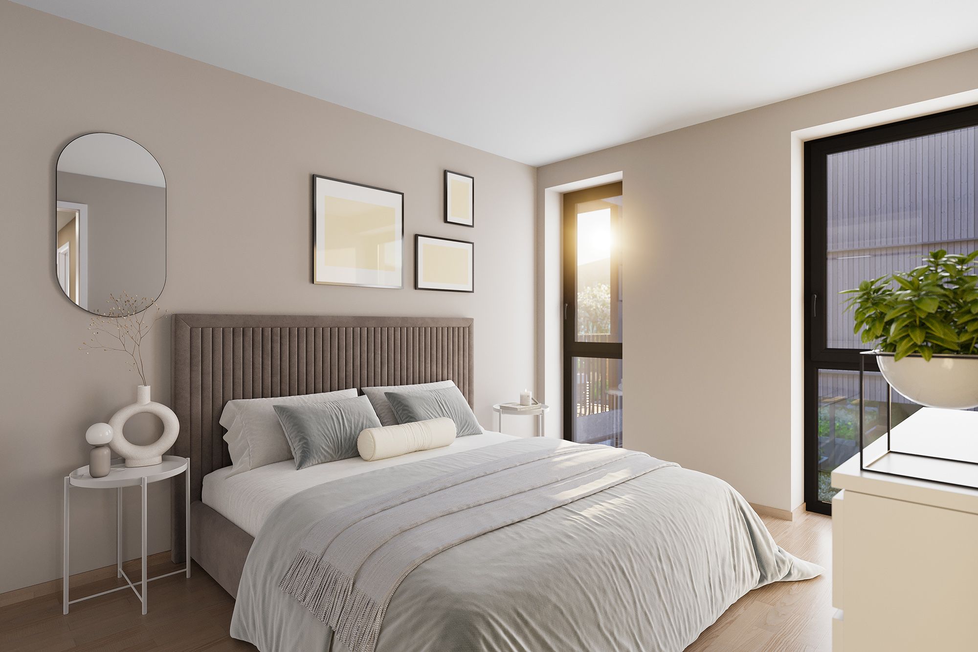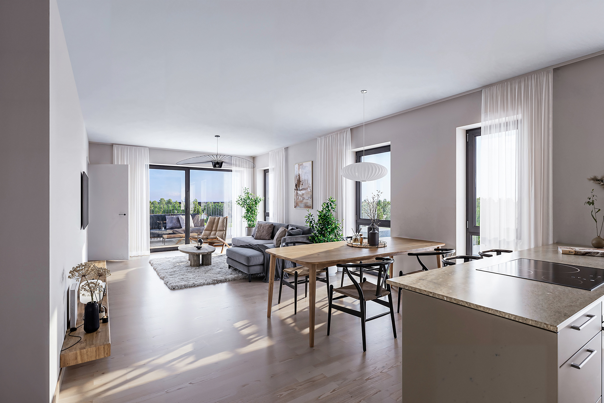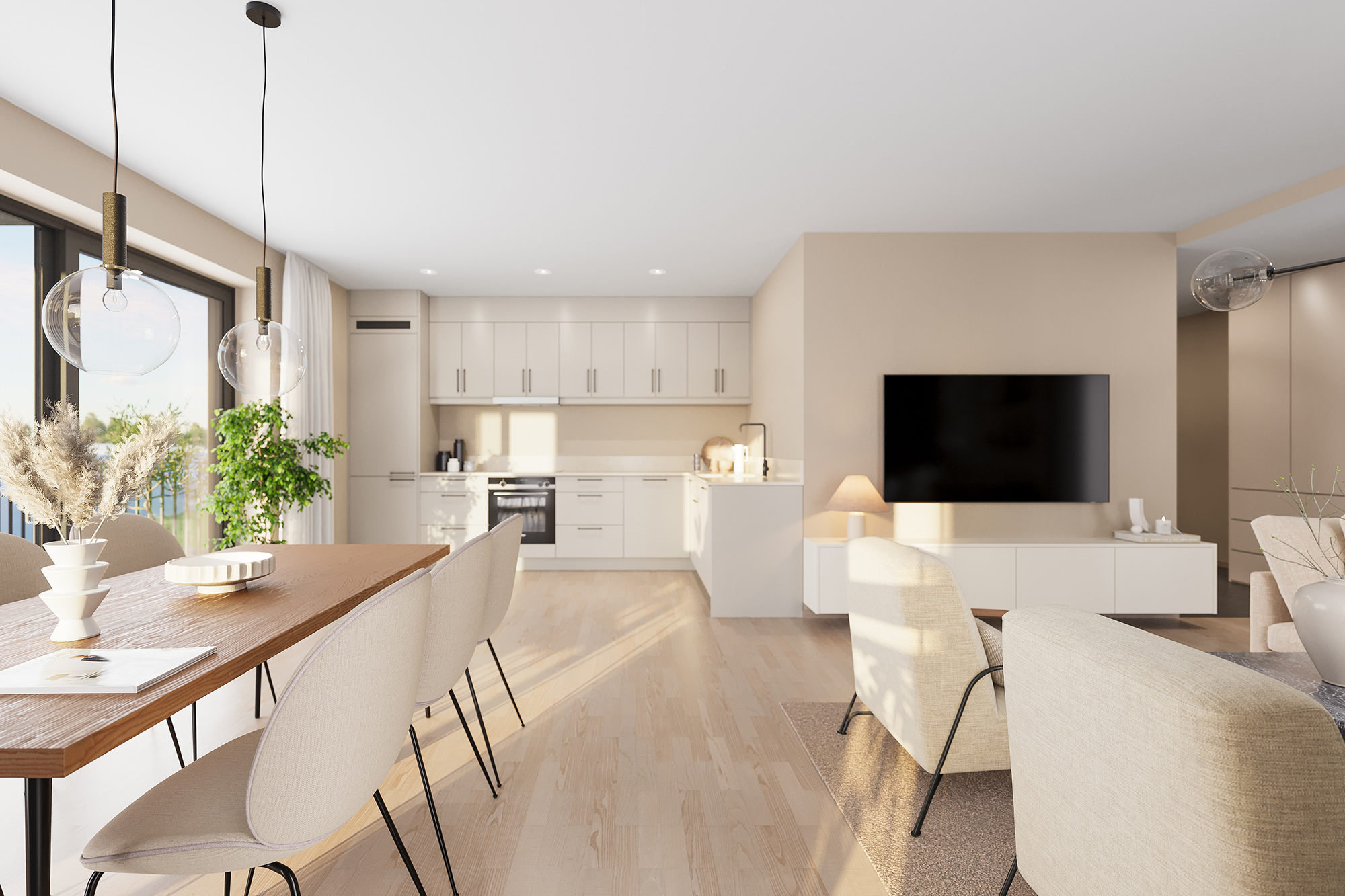 Fra boligene har du nydelig utsikt mot den grønne felles hagen i Verket Atrium og mot Verksparken, med sitt vakre parkområde og rolige omgivelser.