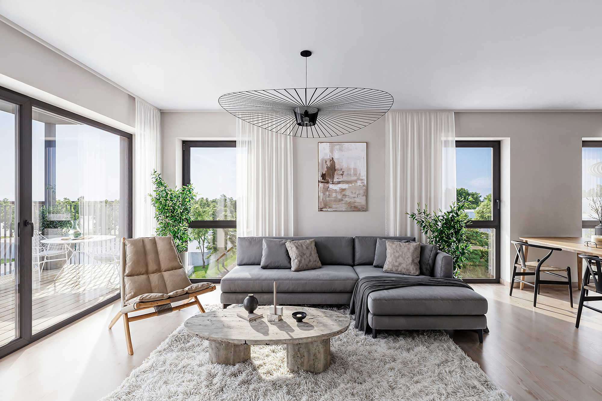 Hus E byr på svært store balkonger, der en del er innglasset, og en del er åpen for solrike dager og lune sommerkvelder.